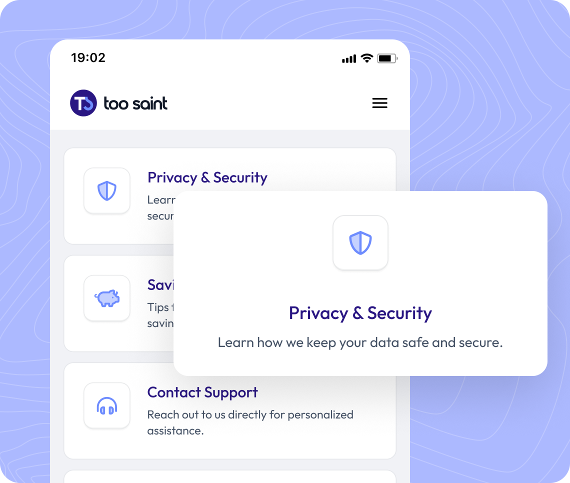 At Toosaint, we treat your trust and data with the utmost care. Our platform employs industry-leading security measures, adheres to strict regulations, and undergoes continuous monitoring so you can feel confident that both your personal information and financial growth are safeguarded.